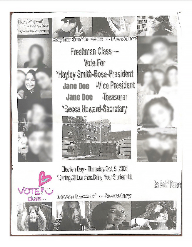 In our second episode, Hayley and Becca discuss the most pivotal event of our high school careers, and possibly our lives: the Freshman Election. Join us as we relive this fever dream together 17 years later. We’re dissecting our posters, speeches, and notes from this historic time in our lives. As the first feminist girl gang of the millennium, we were thirsty for blood and ready to rule Nashua High School North. Below you’ll see our original poster which Becca somehow preserved like a goddamn museum artifact.